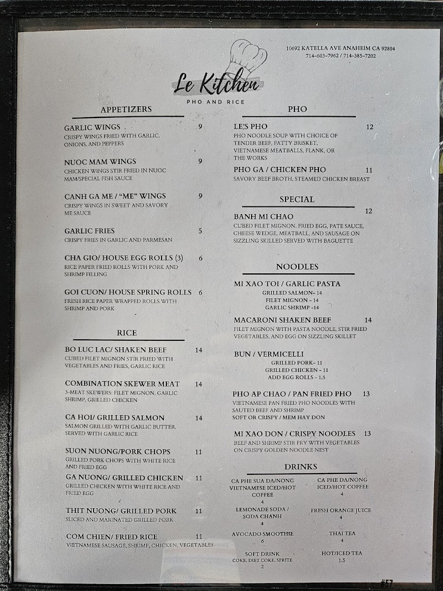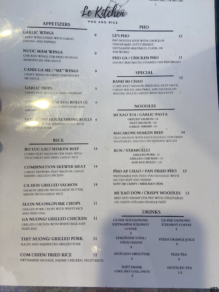 Le Kitchen Pho and Rice Menu